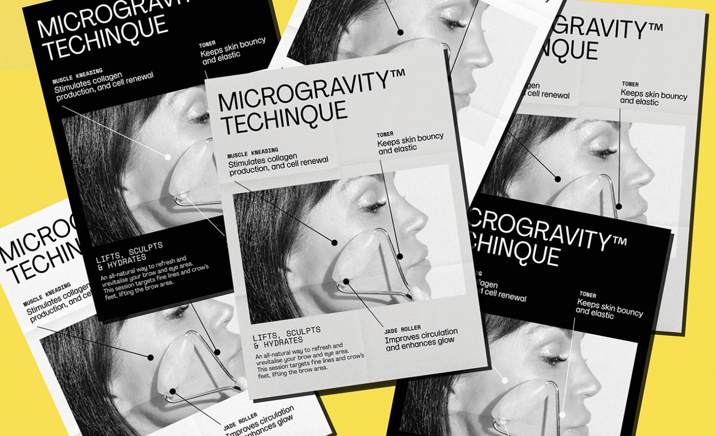 To create a deeper visual brand we created a set of patterns and elements we call Gravity Pulls. The overall concept for the brand was space inspired and how these facial exercises give faces an anti-gravity power. These Gravity pulls are used throughout the brand as patterns, overlays, and as an extra flare.