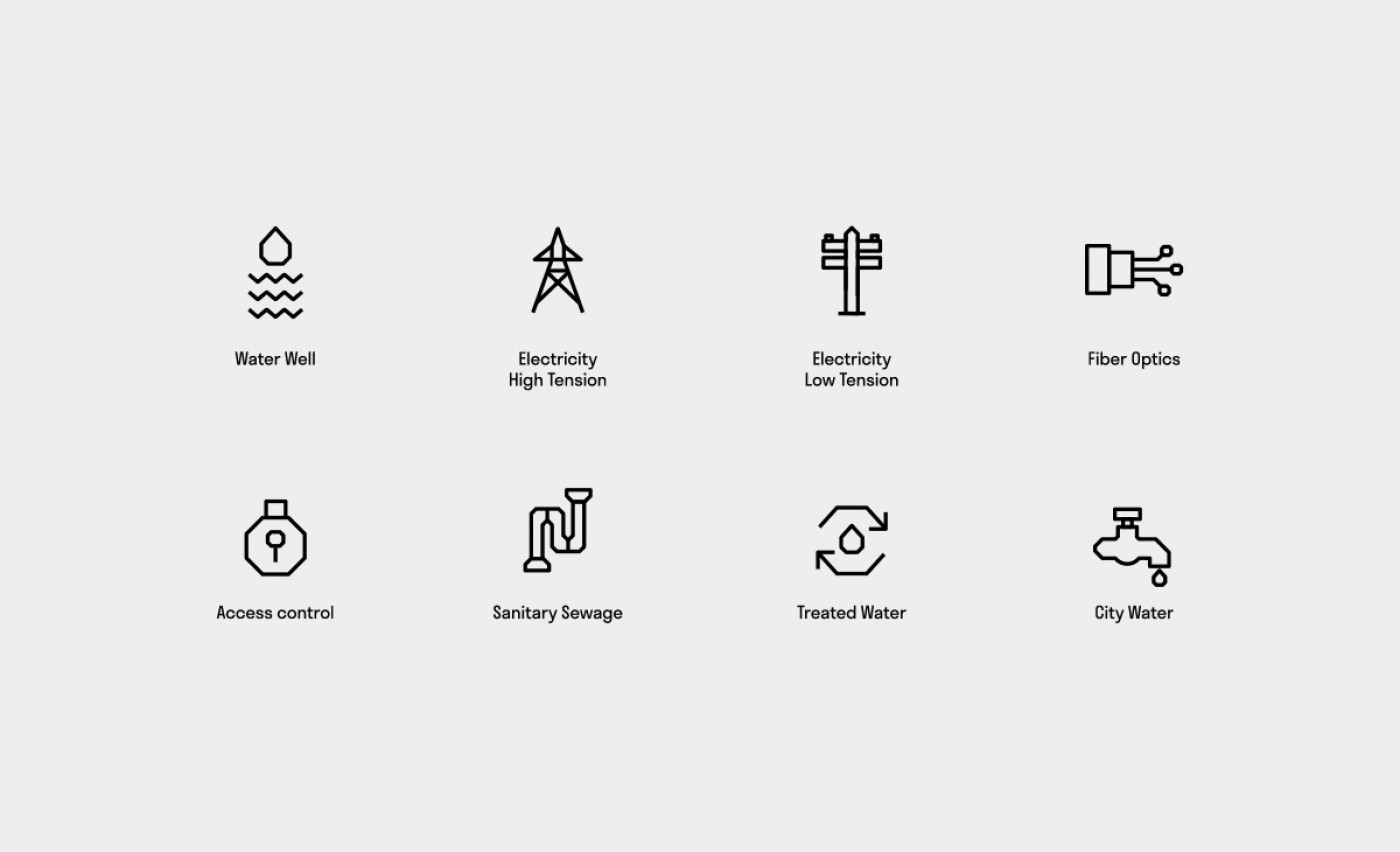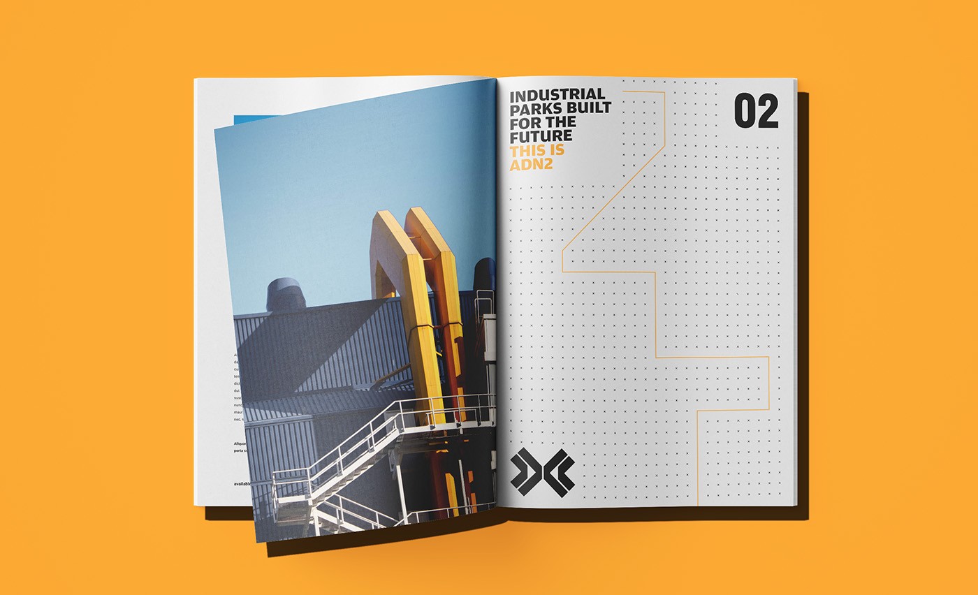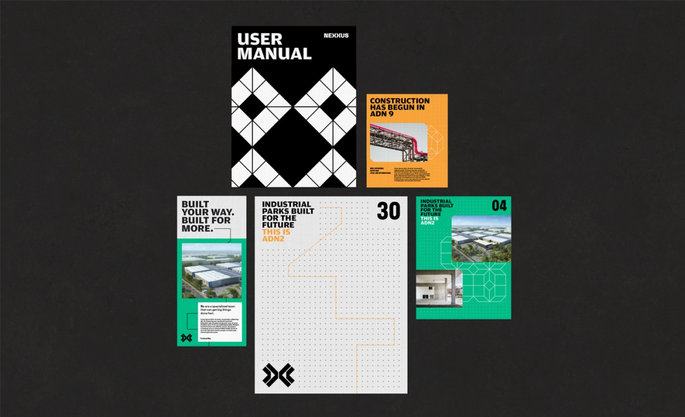 We created a set of structural patterns and formations to add more personality to the brand system. These patterns exist to be modular and versatile to accommodate any brand use. The Structures are born from the iconic Xs that the mark comes from, but used with more complexity. Every formation is unique and different, just like each Industrial development is made unique for each client.