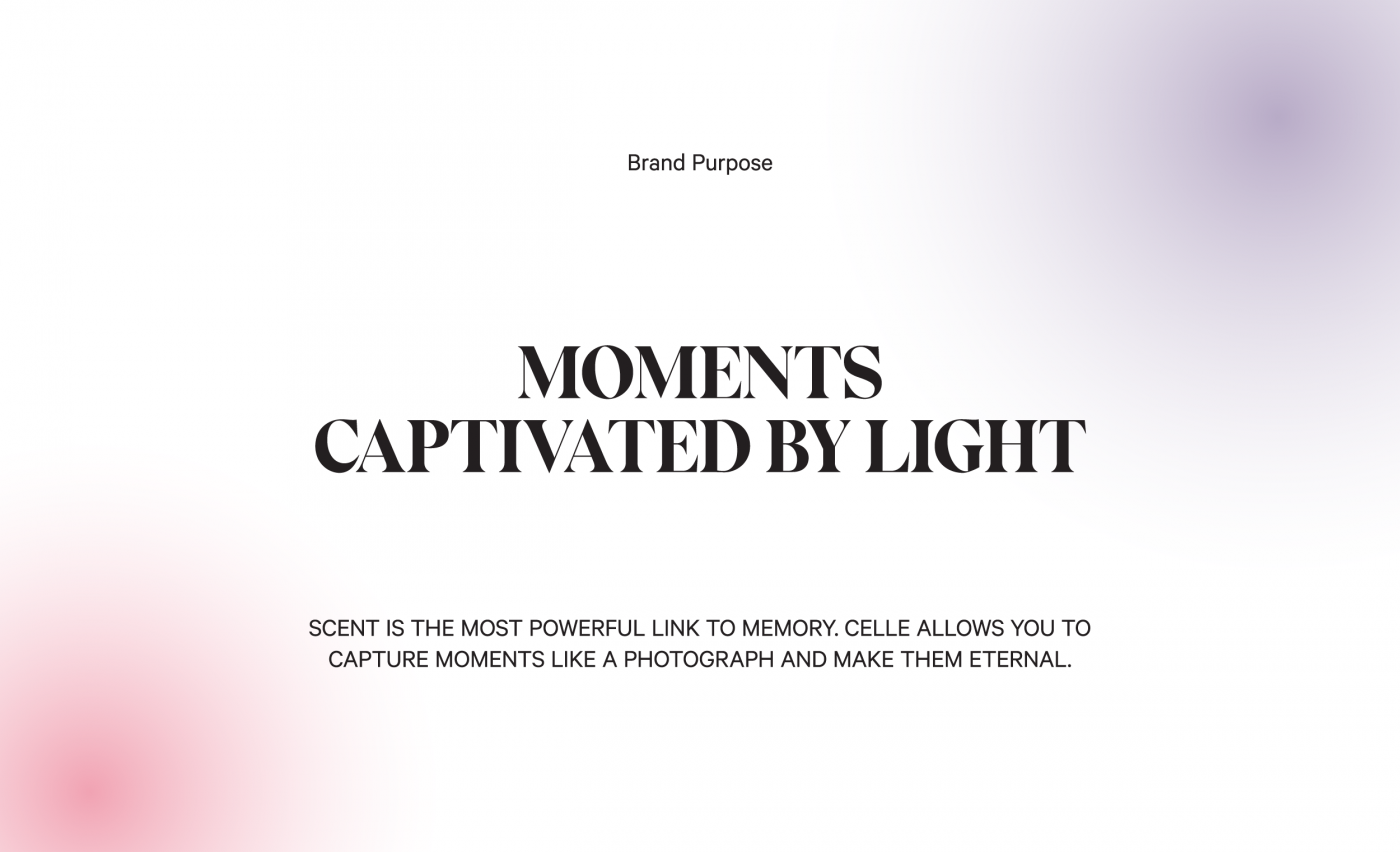 When developing the brand concept, we centered on the idea that light creates and captures the moments we wish would last forever. We wanted Celle to be an unexpected classic and as unforgettable as the moments it creates. The iconic wordmark reflects the brand’s expertise, while adding a touch of classical elegance. The halos of color arise from light itself and represent the warmth and peace of a dream-like moment in time.